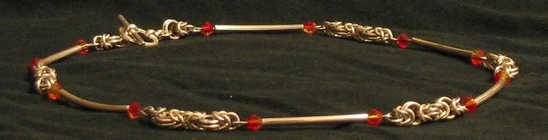 I finally got around to taking some pictures of some stuff I made a while ago. Being a big fan of Greek mythology, I named this necklace "Acheron". The Acheron is a river located in the Epirus region of northwest Greece. Acheron translates as the "river of woe" and it was believed to be a branch of the underworld river Styx over which in ancient Greek mythology Charon ferried the newly dead souls across into Hades. I felt the colours of the beads made this a fitting name.